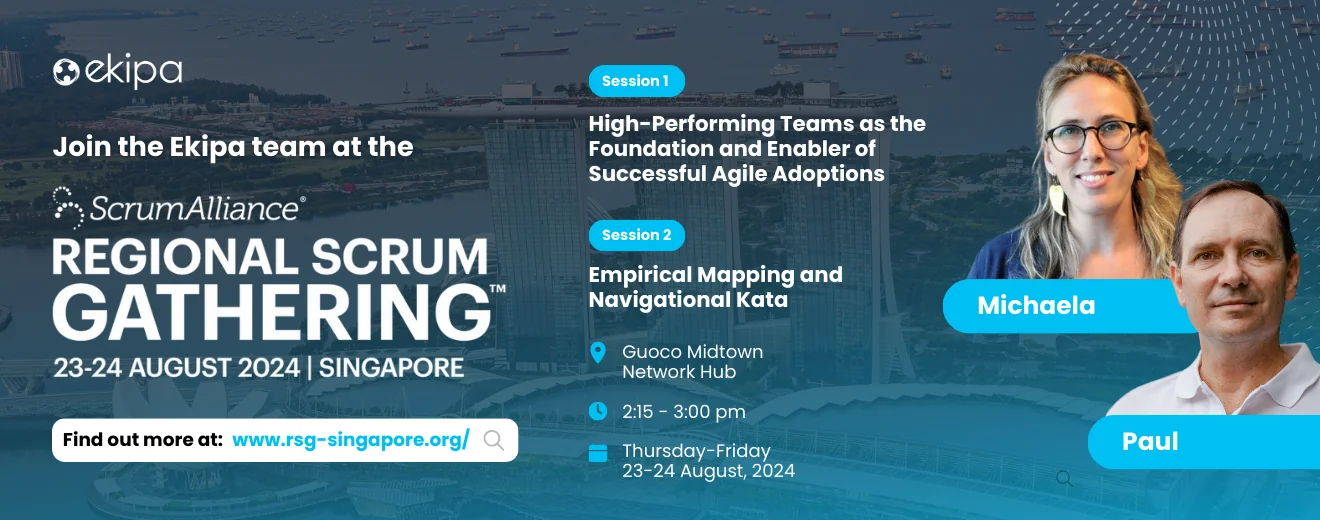 Join the Ekipa team at the 2024 Scrum Alliance Regional Scrum Gathering in Singapore! Agile Ways of Working is a team sport, no matter which framework you adopt. Our coaches and consultants, Michaela and Paul, will be sharing from their experiences in leading transformations and coaching teams, to identify the systemic conditions that enable high […]